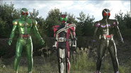Kenji Akabane as Skyrider (voice), Takumi / Kamen Rider Faiz (voice) |