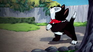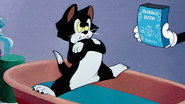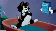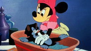 Minnie entreprend de donner le bain à son chat Figaro...